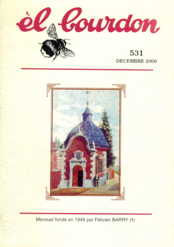 A propos d'un tableau de François Loriaux - Jean-Luc Fauconnier (page: 2) Fé donsér s' cheur su l' cu dou four - Jean Wyns (page: 6) Pa d'vant l' pôrtrét - Robert Stainier (page: 7) Mononke Nowé - Marie-France Gilles (page: 8) Lès mouchons - Yvon Laurent (page: 9) Vîve lès-ârtisses ! - Pol Bossart (page: 9) Leû dérin tango - Andrée Gos (page: 10) Sint Nicolas - Amandine Lison (page: 10) Èl seûl qui vwot vol'tî - Michel Meurée (page: 11) Pou tûzér - Josée Mathot-Spinosa (page: 11) Bouneûr - Claire Colonval (page: 12) Ène sote idéye - Nadine Modolo (page: 13) Sèptante céq' ans èt co stampéye ! - Robert Bauffe (page: 14) Djan' pouleut mô - Jean-Luc Fauconnier (page: 15) Al pourchûte du XXIème sièke - Emile Dumont (page: 16) Scrîre - Marie-Christine Bois (page: 17) Lès transes d'in pôve lapin ! - Dominique Vanderstoken (page: 19) Ène mouche - Franci De Moor (page: 20) Èl langâdje cosmopolite (chanson) - Inconnu (page: 21) Saquants vîyès quéntes a môde dès cènes qui vûdît du Tonia - Inconnu (page: 23) I vôt mieus dè rîre (11) - Robert Arcq (page: 24) A Coûrcèle, pa mès pîssintes (1) - Djan Cron - Armand Deltenre (page: 25) Glossaire de Courcelles-Souvret (4) - Omer Bastin | Armand Deltenre (page: 27) Qué dalâdje (142) - Chandeleur - Jean-Luc Fauconnier (page: 28) |