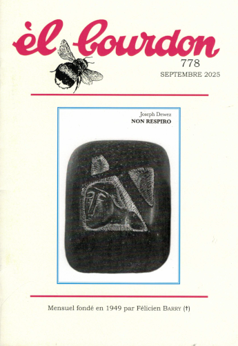 Non respiro - Jean-Luc Fauconnier (page: 2) Vécent ô Borinâje - Bernard Baumans (page: 7) Èl feu - Anne Blampain (page: 10) Prinde si pansion - Brigitte Boulvain (page: 11) Mi vile… Cînè ! - David Delrée (page: 12) Ène noûve vikérîye ! - Olivier Douchamps (page: 13) Lès-orâyes - Jean-Luc Fauconnier (page: 13) Lès bwèsses aus lîves - Jean Hamblenne (page: 14) Ee nouviau éepot - Jacqueline Lefèbvre (page: 15) Voste âdje èt l' ménk… - Jacques Lardinois (page: 17) Lès p'tits moustreûs d' bèrliloutches du vî Lîtchamp - Raymond Lequeux (page: 17) Du latin au wallon… - Michel Meurée (page: 20) One bèle atèlēye - Léon Minsart (page: 21) In-atèr'mint - Eric Monaux (page: 22) Èl rintréye a scole - Viviane Velghe (page: 23) Pierre Légat (1946-2025) - Georges Larcin (page: 24) L'ërtoûr dë guêre dë m' pa in 1945 - Pierre Légat (page: 24) J'ai rencontré… Albert Volral - Michel Robert (page: 25) Les sept péchés capitaux (1) - L'avarice - Atelier wallon de Charleroi (page: 27) Pôrtrét d'in rapia - Christine Tiercet (page: 29) Les fôves de Léon Bernus (35) - Le lion qui attrape sa tripotée - Léon Bernus (page: 30) Les fôves de Léon Bernus (35) - Èl liyon qu'atrape es' pile (traduction du texte précédent) - Léon Bernus (page: 31) Une lecture bilingue au Kiosque aux livres - Inconnu (page: 32) Li p'tit prince lîdjwès à nouveau disponible - Inconnu (page: 32) |